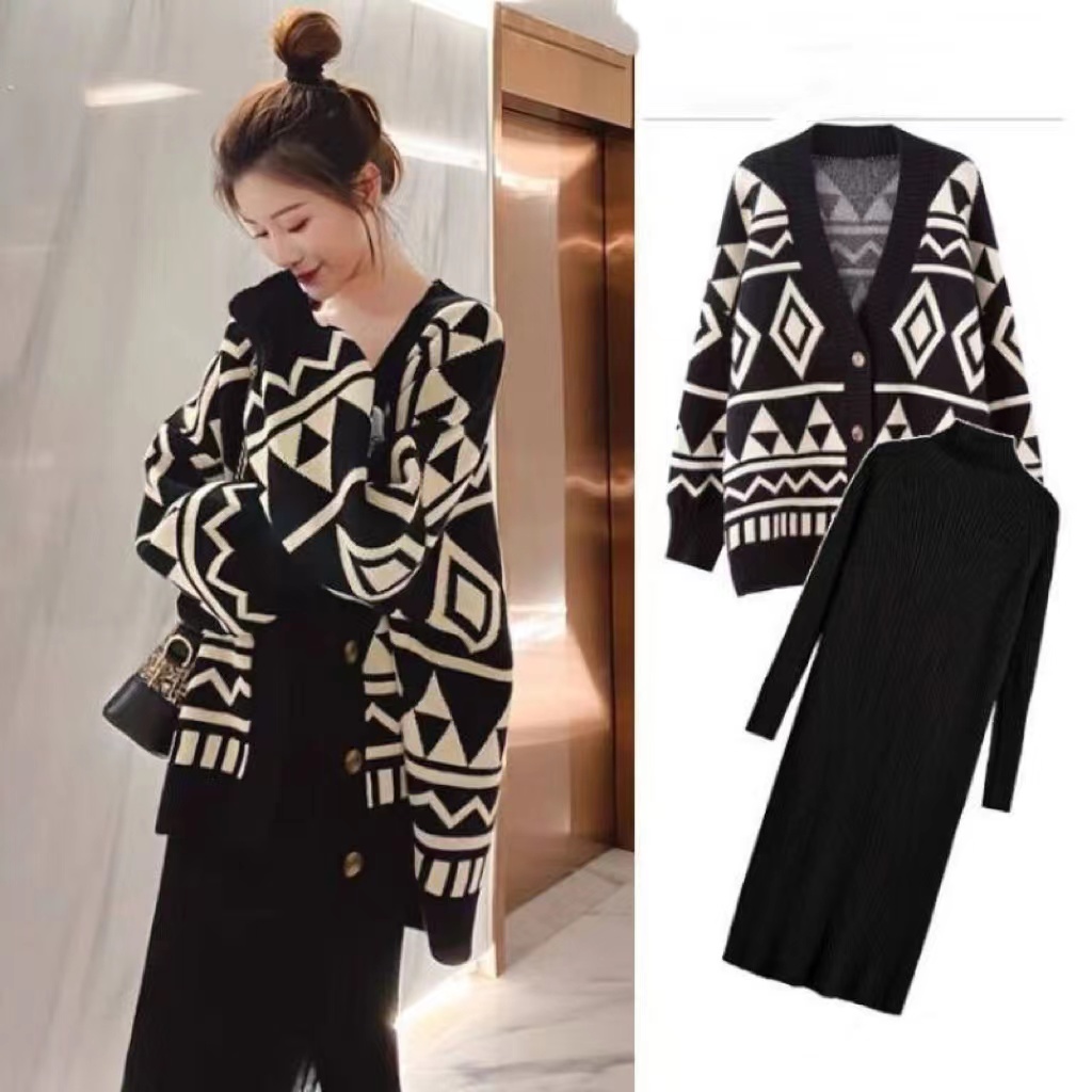 カーデガン+ニットワンピース 2点セット レディース セットアップ 長袖 通勤レディースファッション ワンピース