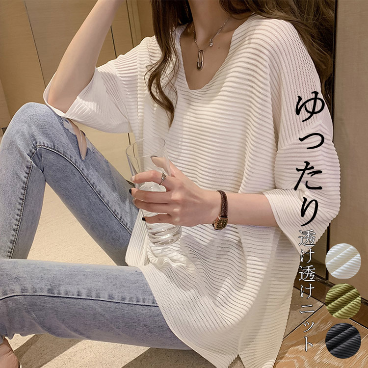 涼しいサマーニット 伸縮性 カジュアル フェミニン 通勤 通学 ゆったり ラフな着心地 お洒落 ガーリー 出かけ デート 大人気