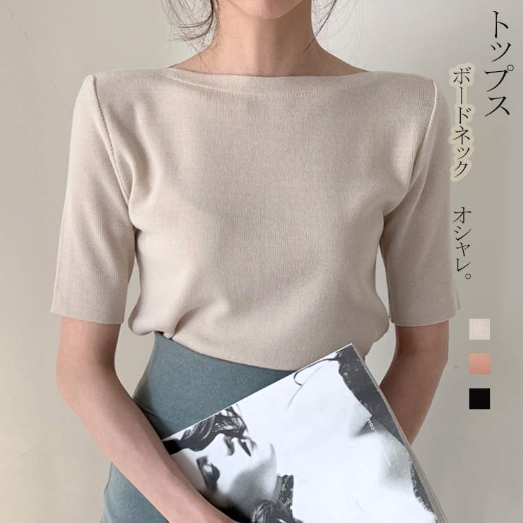 ボートネックでこなれ見え 五分袖が二つの腕カバーできる カットソー 七分袖 ボートネック 大きいサイズ シャツ サマーニット ゆったり