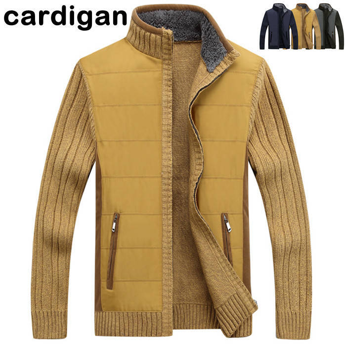 ニット カーディガン スタンドカラー 立ち襟 ニットジャケット メンズ 前開き 切り替え柄 厚手 アウター 暖かい ショートコート シンプル カジュアル cardigan 長袖 トップス 春 秋物