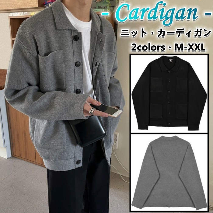 ニット カーディガン 長袖 ジャケット ショートコート アウター トップス 春秋服 3色 ブラックメンズファッション トップス カーディガン