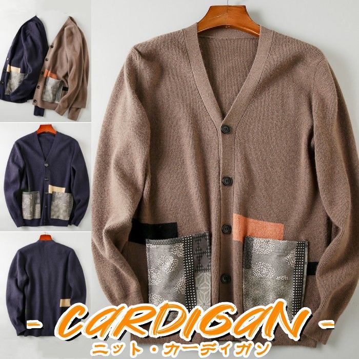 カーディガン 前開き ニット アウター 春秋新作 4色 黒 黄 青 灰メンズファッション トップス カーディガン