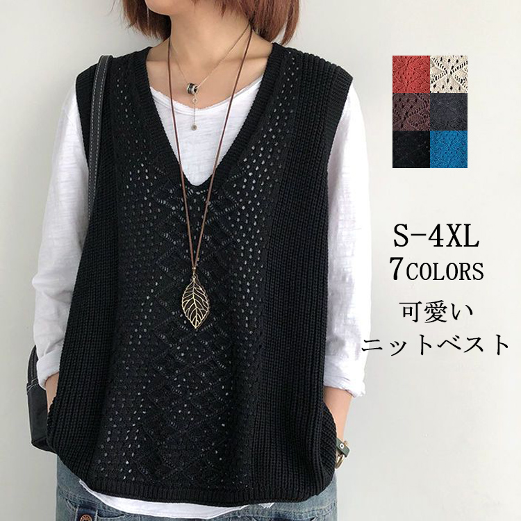 ニット ベスト レディース 春 プルオーバー ニットベスト 春ベスト おしゃれ 着回し トップス 体型カバー ノースリーブ シンプル カジュアル ナチュラル お洒落 可愛い