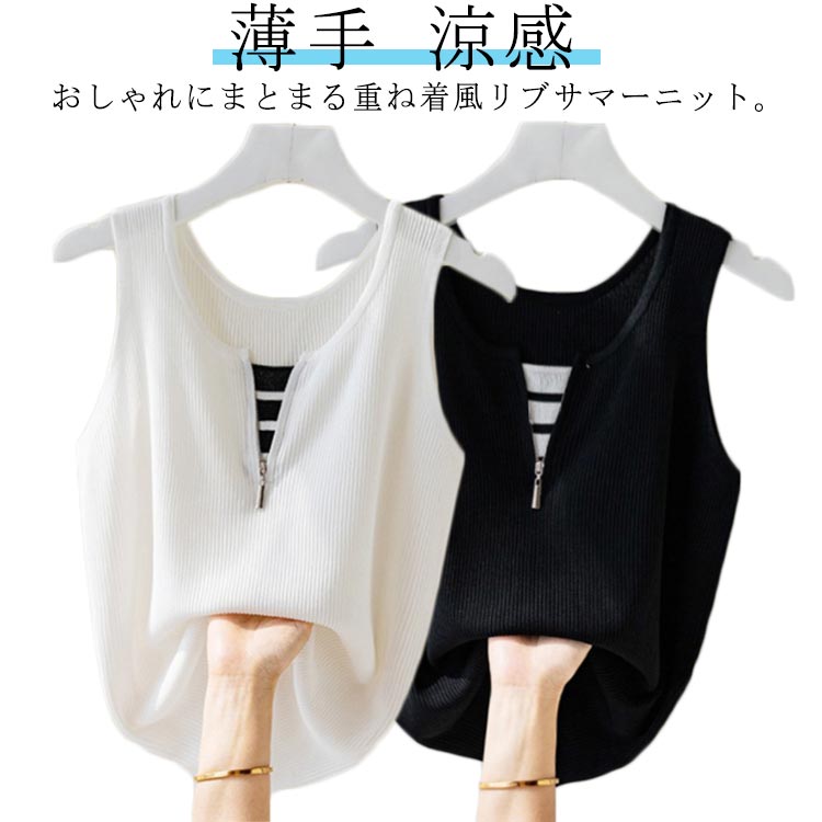 清涼 ニットタンク サマーニット 袖なし スーツインナー オフィスカジュアルレディースファッション トップス ニット セーター ニットキャミソール
