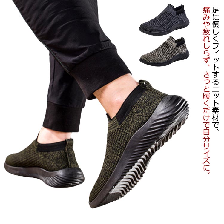 ニットスリッポン ニットシューズ スニーカー 韓国 カーキ ブラック グレー靴 メンズ靴 スニーカー