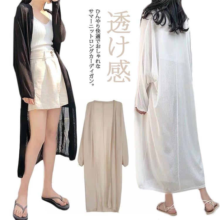 柔らかくてさらっと暑い季節も快適♪ ロングカーディガン ひんやり 涼しい サマーニット カーディガン 羽織り 体型カバー