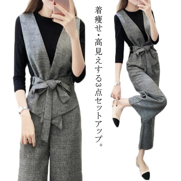 セットアップ ワイドパンツ 韓国ファッション フォーマル お宮参り ジレベスト ニットレディースファッション パンツドレス