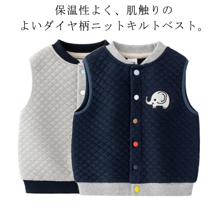 気温変化の激しい春先にちょうどいい♪ キルトニット キッズベスト ベビー お出かけ 散歩 通園 子供服