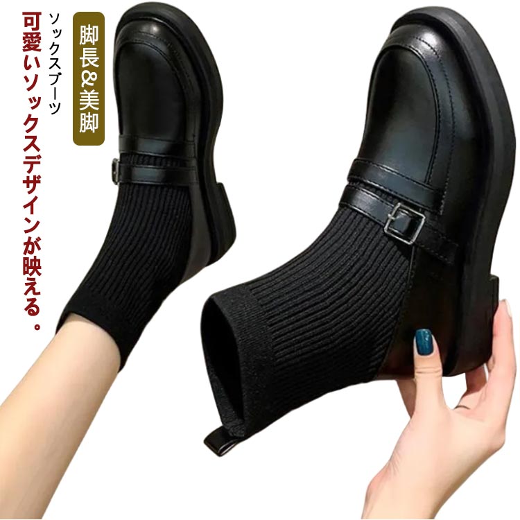 ニットブーツ ショートブーツ ソックスブーツ ミドル丈 ソックスブーツ 厚底ブーツ 痛くない 歩きやすい 疲れない リブニット