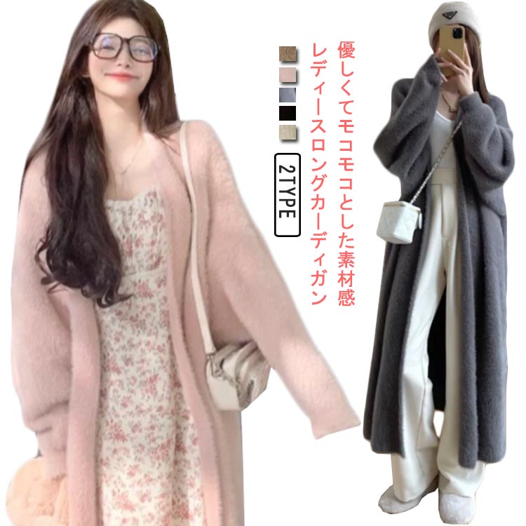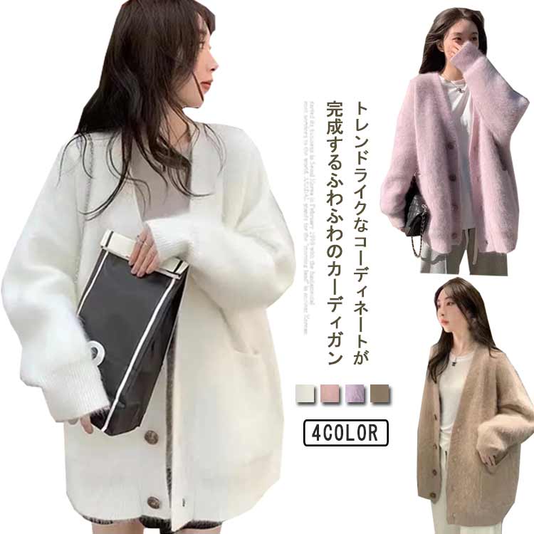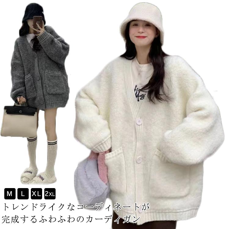 モヘア風 ニットカーディガン ロングカーディガン モコモコ レディース 冬 カジュアル ゆったり カーディガン ふわふわ 20代 トップス 秋 ファー 前開き 暖かい きれいめ 韓国 体型カバー 春