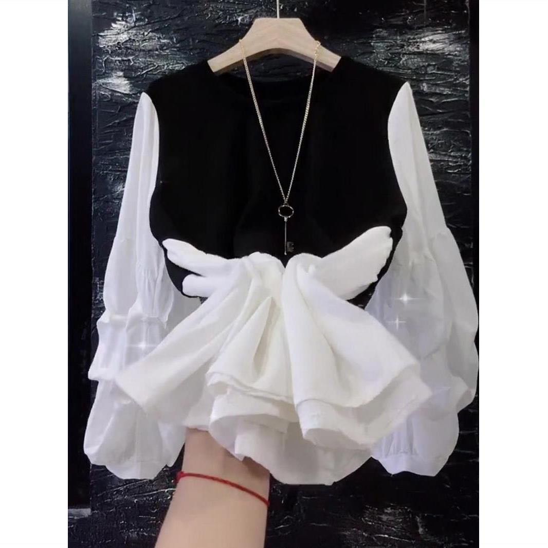 シアースリーブ ドッキングシャツ ボウタイシャツブラウス
