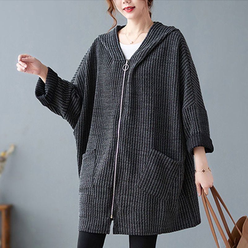 レディース ニットコート フード付き