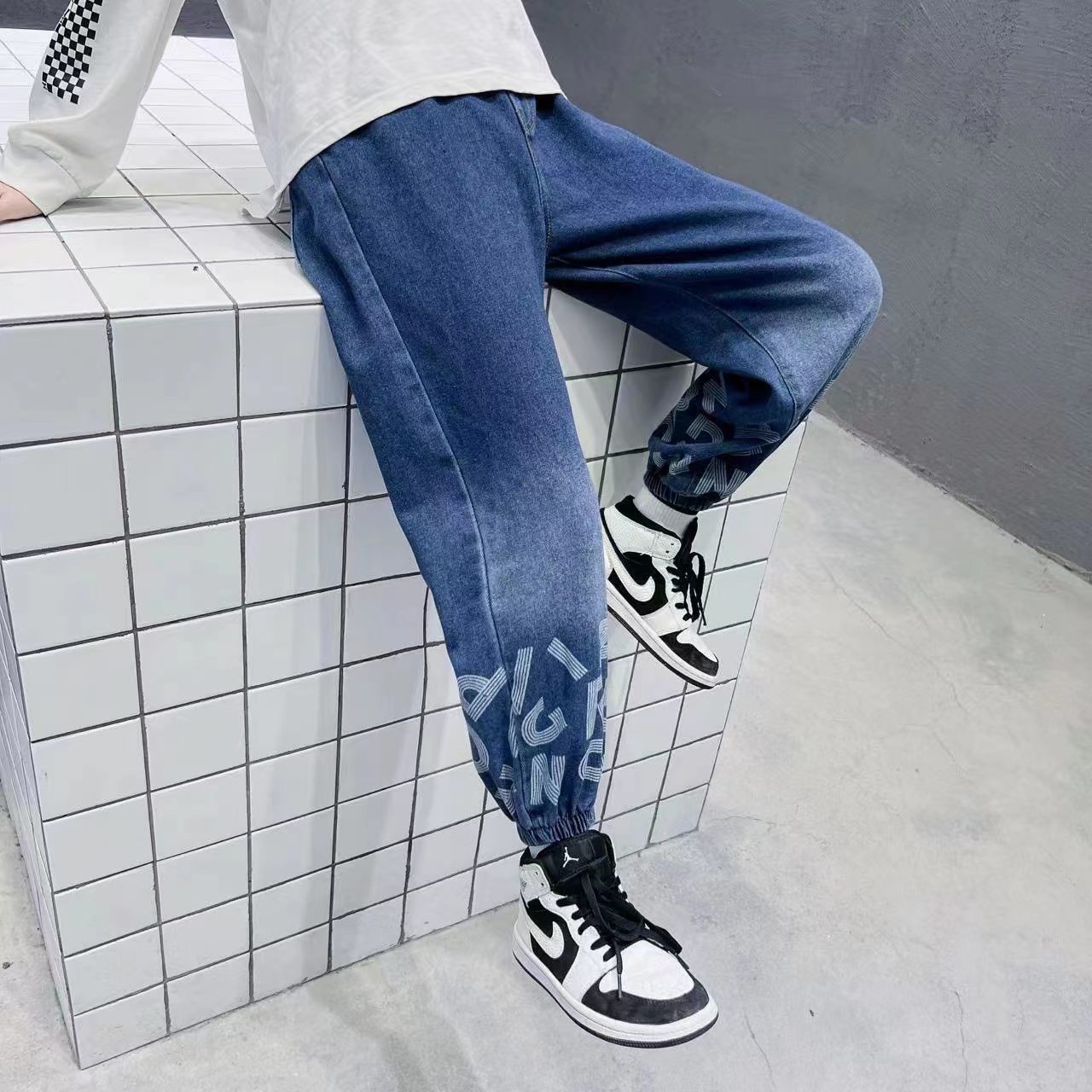 デニムパンツ ビジュー付き