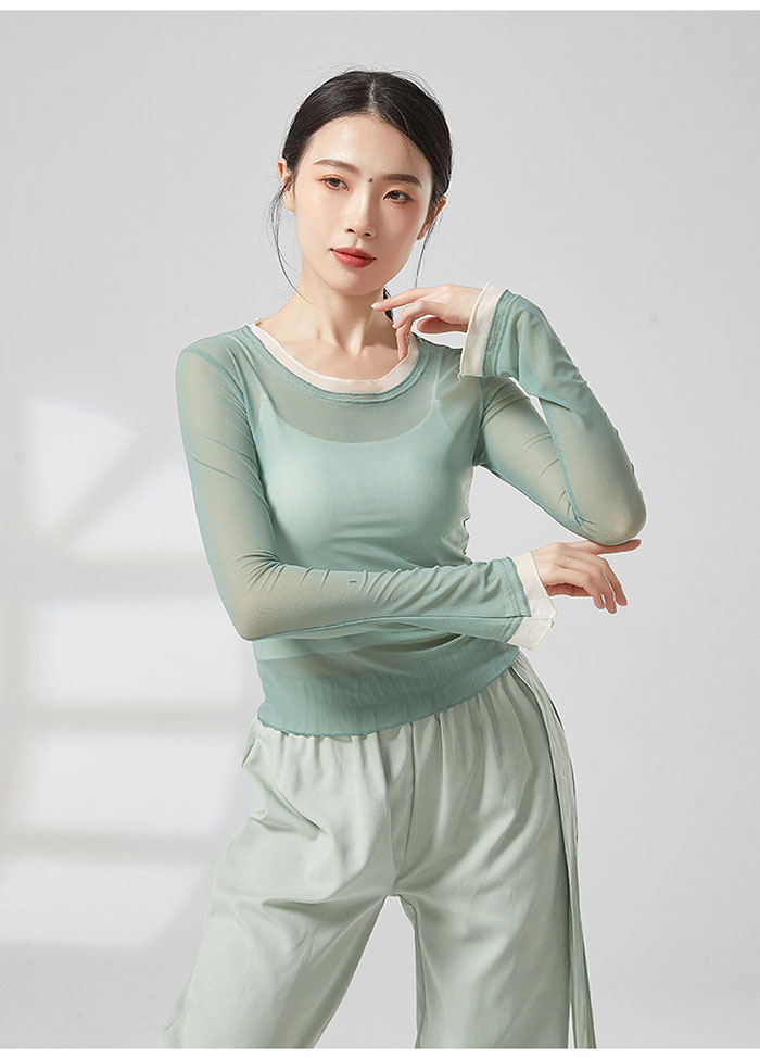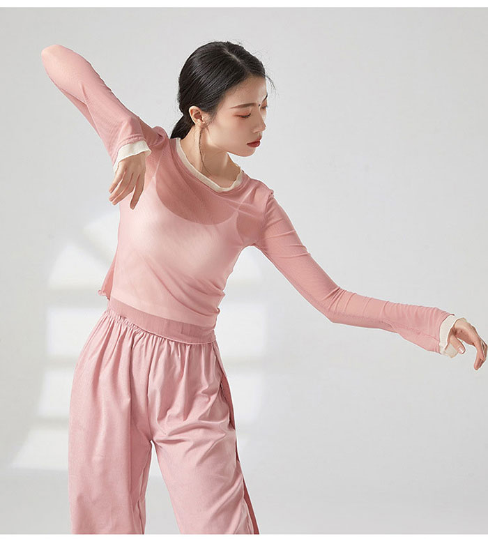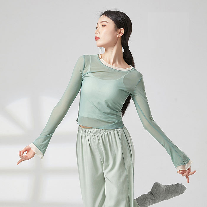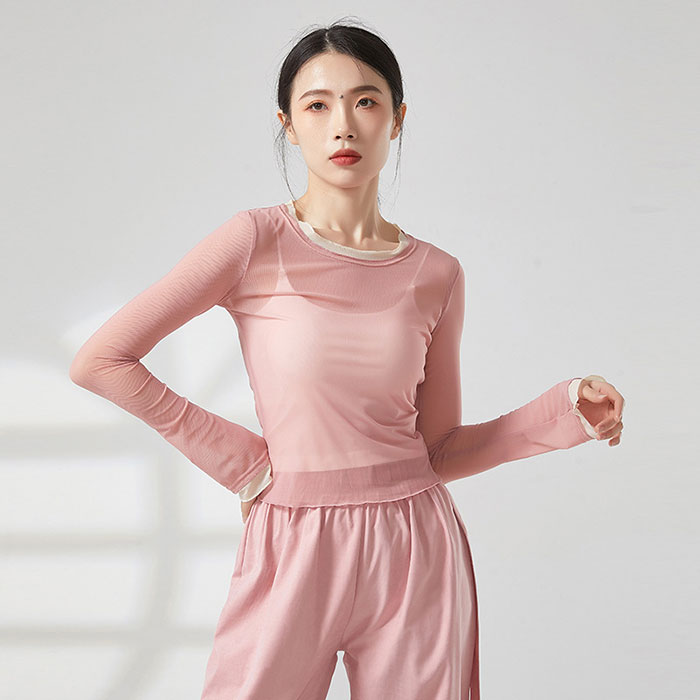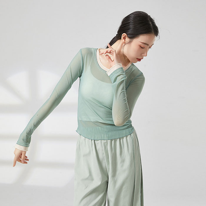 ダンストップス 長袖 シースルー トッ