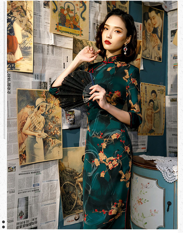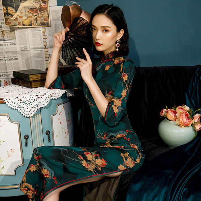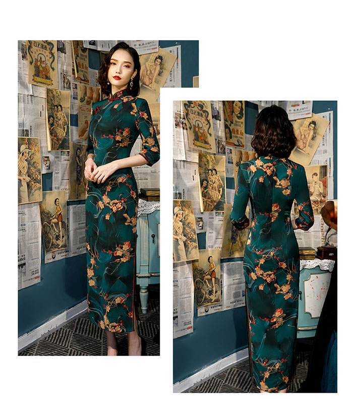 チャイナ ドレス ロング丈 7分袖 コ