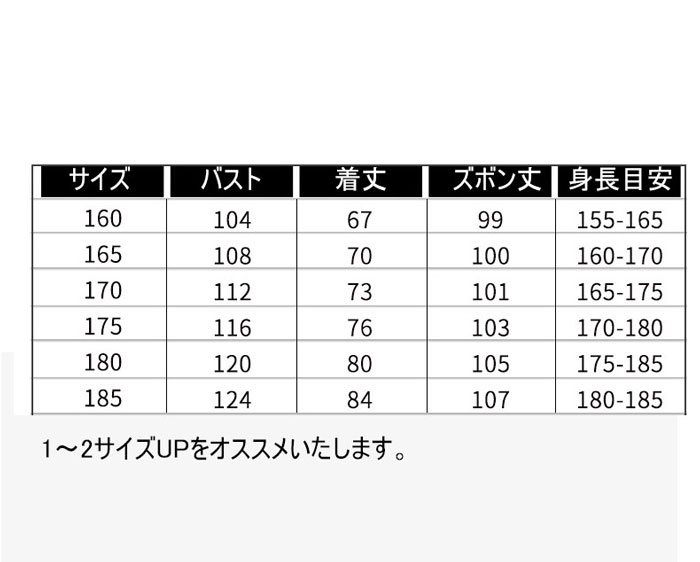 サイズ: 160cm 165cm 170cm 175cm 180cm 185cm