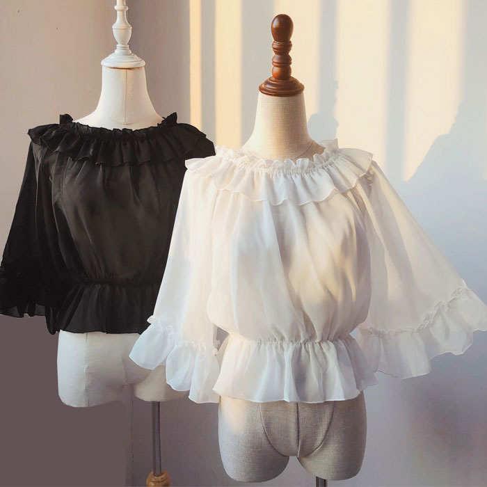 シフォンブラウス シアーブラウス ボリューム袖
