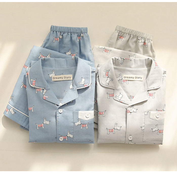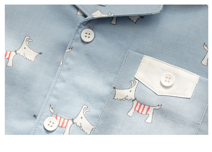 長袖前開きガーゼパジャマ 男の子 犬柄