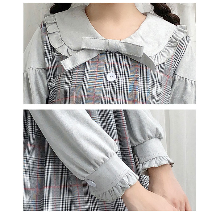 シアースリーブ ドッキングシャツ ボウタイシャツブラウス