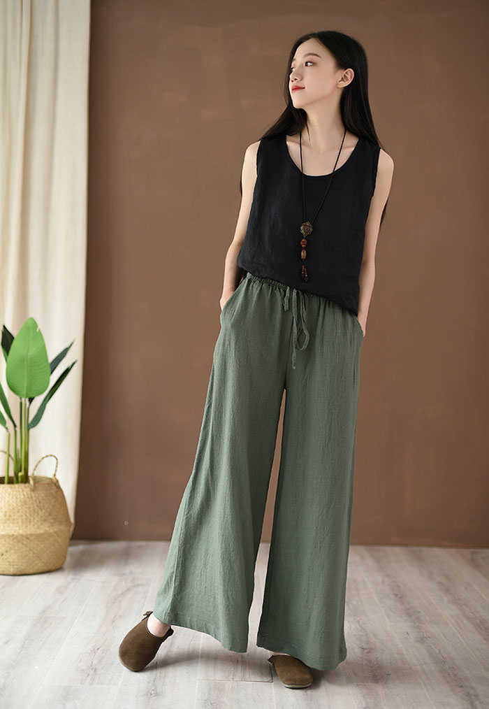 ワイドパンツ レディース リネン パン