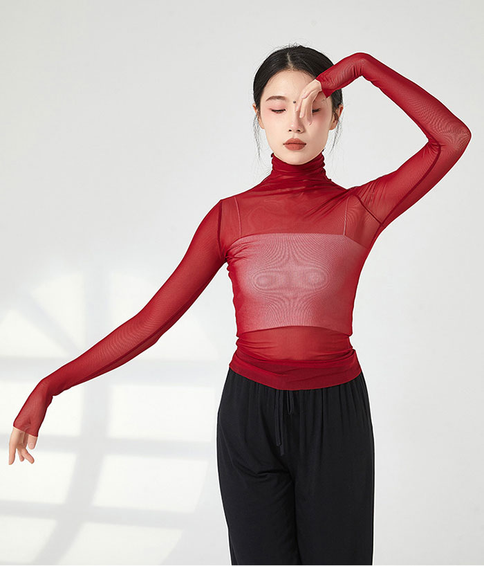 バレエ トップス 長袖 ストレッチメッ