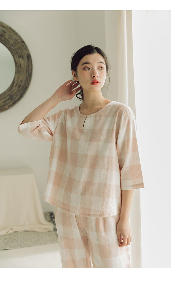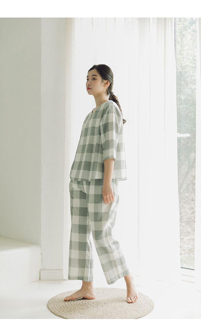 チェック柄 綿100% ガーゼパジャマ