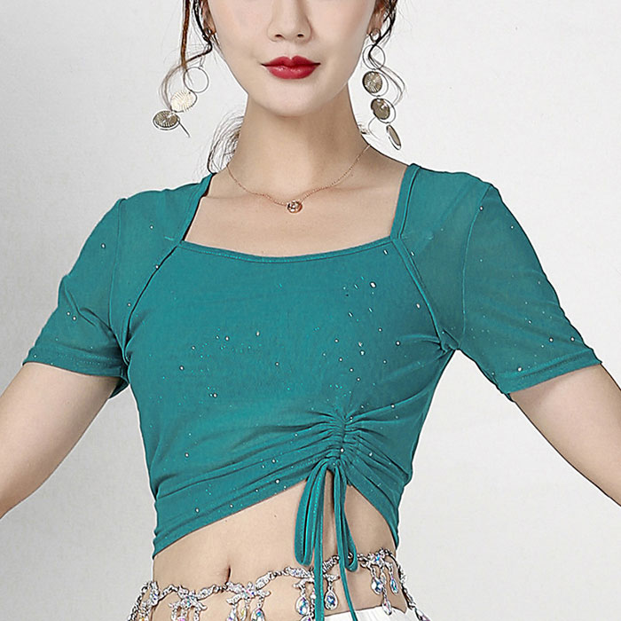 ベリーダンス 衣装 セット トップス スカート レッスン着 動きやすい伸縮生地 キラキラ セットアップ 練習着 ダンス衣装 ヒップスカーフ スカート レッスンウェア 半袖 ダンス トップス レディース