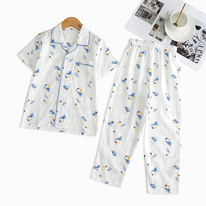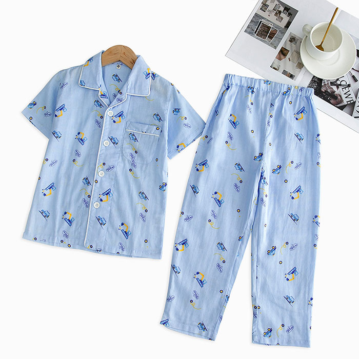 キッズ パジャマ 男の子 半袖 長袖 綿100% ガーゼ ルームウェア 110cm 120cm 130cm 140cm 150cm 160cm 春夏 夏 子供 総柄 かわいい おしゃれ 涼しい コット