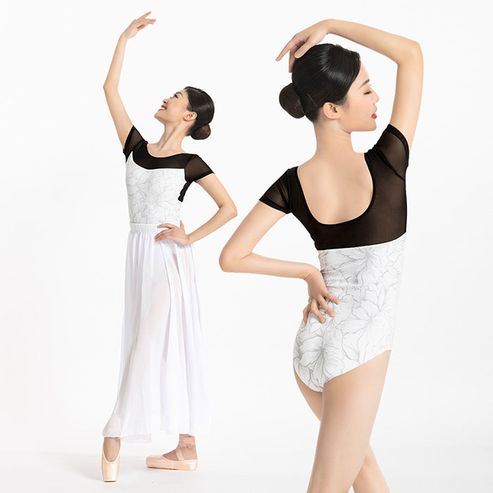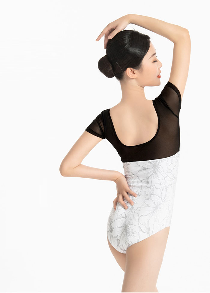 バレエ レオタード 黒 メッシュチュー