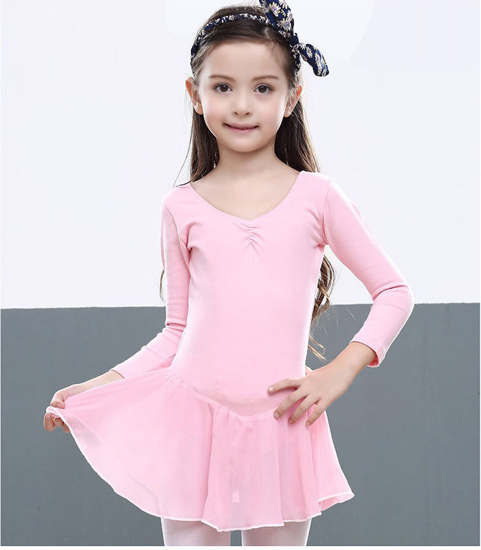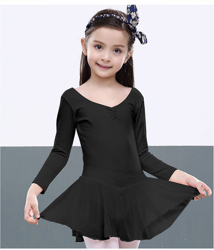 スカート付き 長袖 バレエレオタード