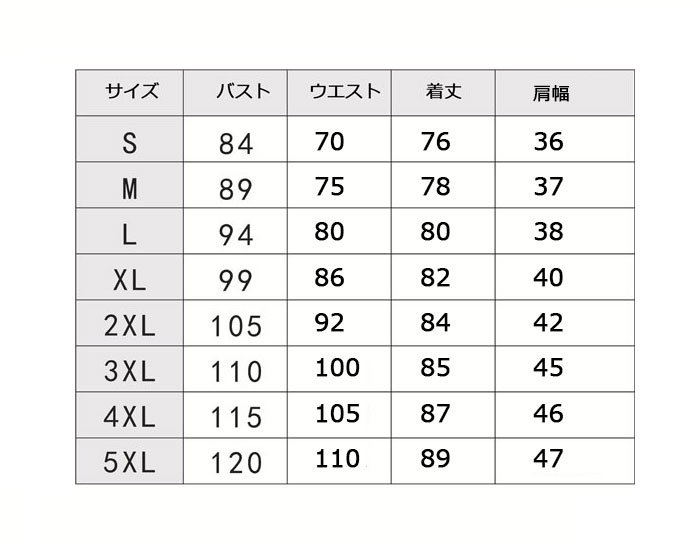 サイズ: S M L XL XXL 3XL 4XL 5XL
