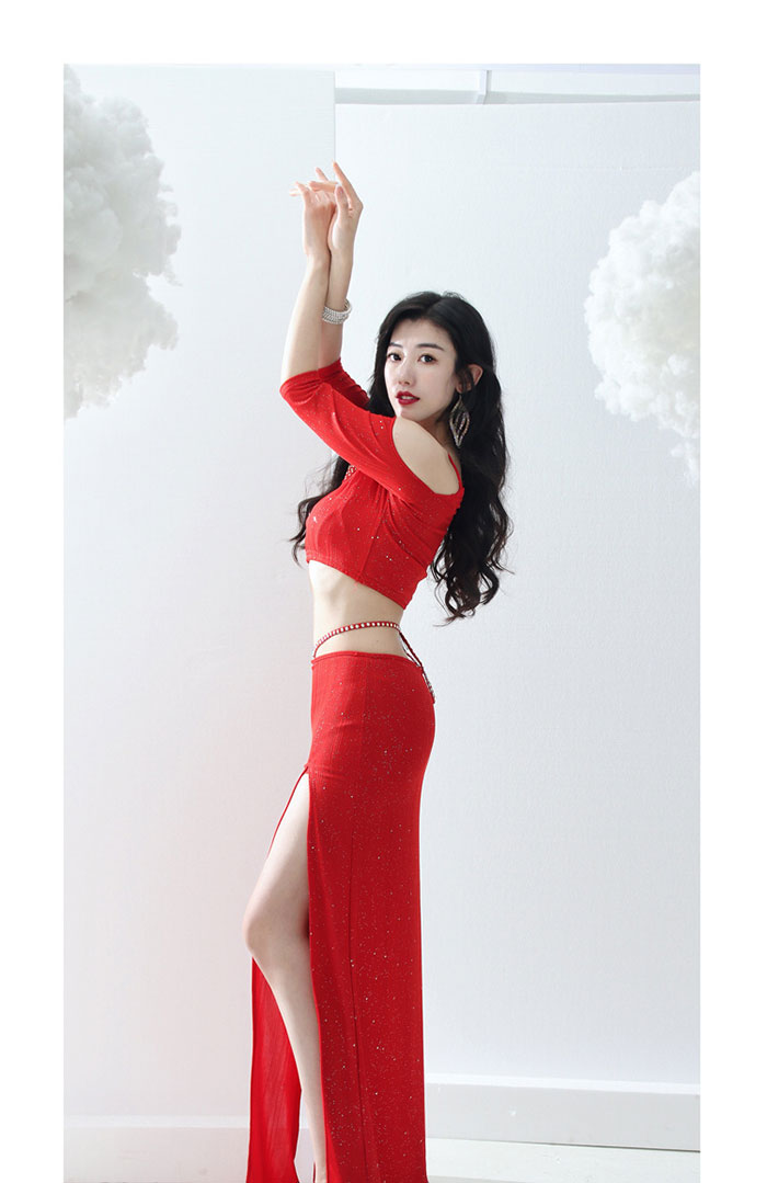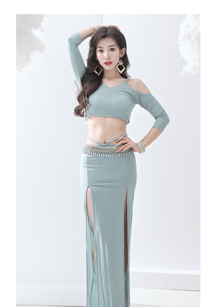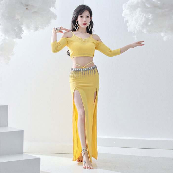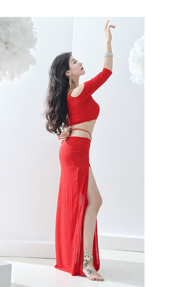 ベリーダンス衣装 セット衣装 華やか スパンコール キラキラ おしゃれ ベリーダンス 衣装セット ロング丈 スカート スリット入り オフショルダー トップス 可愛い ベリーダンス 衣装 インナーパンツ