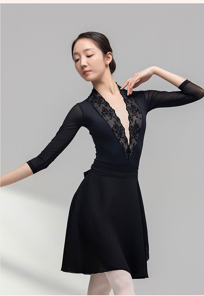 ベリーダンス 衣装 セットアップ レッスン着 可愛い 花柄 ストレッチメッシュ 長袖 Vネック へそ出し ショット丈 トップス スリット オーバー スカート ロング丈 おしゃれ ダンス衣装 ステージ衣