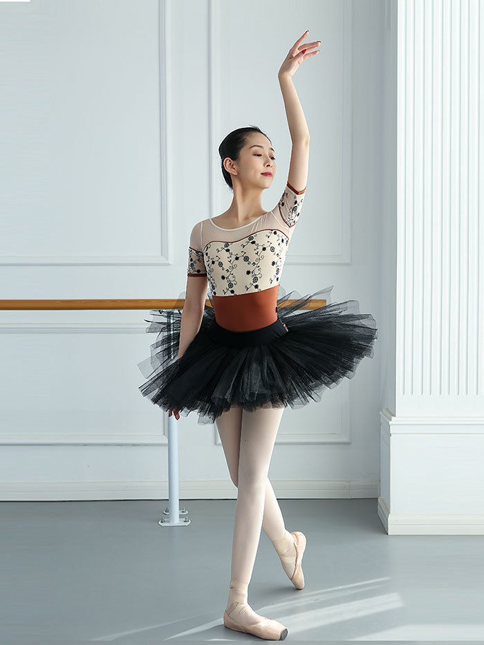 ベリーダンス 衣装 セットアップ レッスン着 ひょう柄 ヒョウ柄ブラウン ストレッチメッシュ 8分袖 Vネック へそ出し ショット丈 トップス スリット入り ロング丈 パンツ スカート付き レオパード