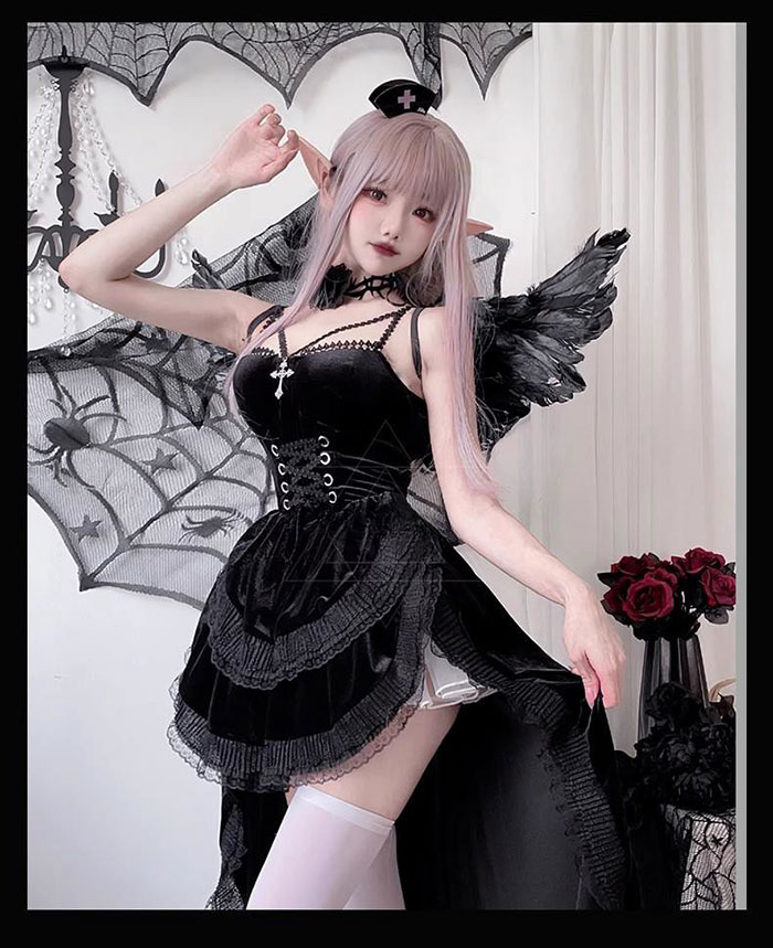 horizontal-key: ドレス単品 ドレス+チョーカー ドレス+バニエ/白 ドレス+バニエ/黒 ドレス+チョーカー+バニエ/白 ドレス+チョーカー+バニエ/黒 ドレスチョーカー/バニエ白/タイツ ドレスチョーカー/バニエ黒/タイツ