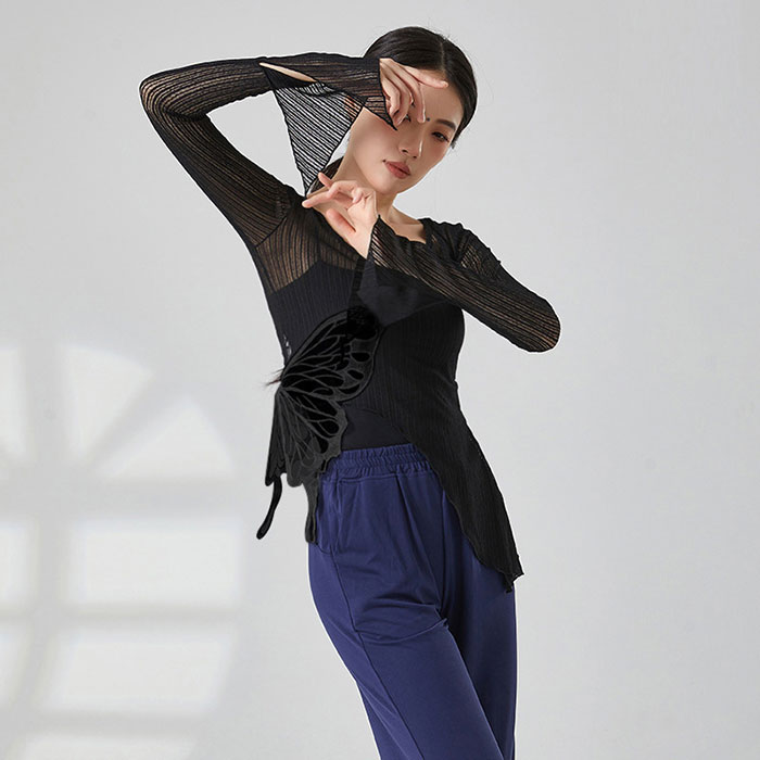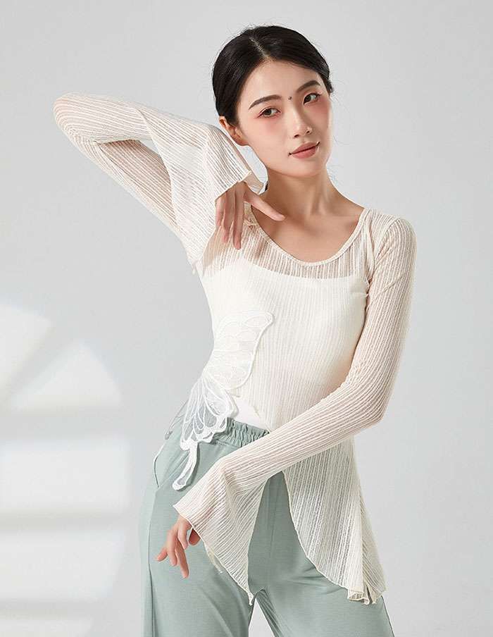 ダンストップス 長袖 透け感 トップス