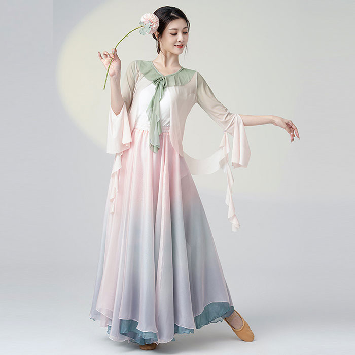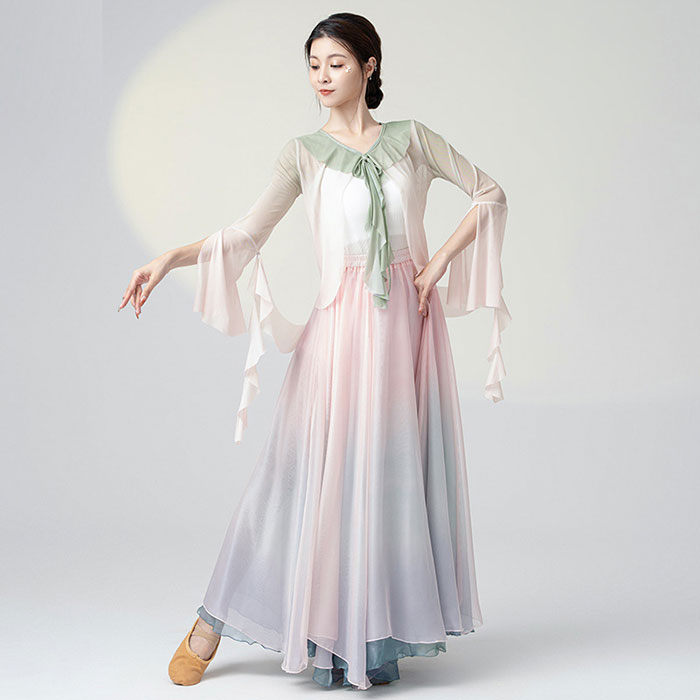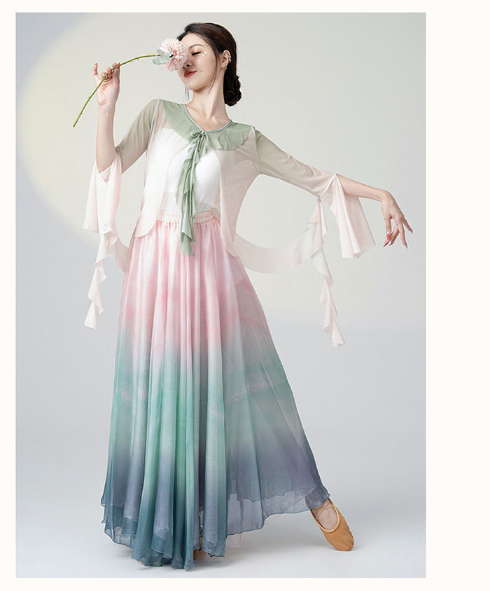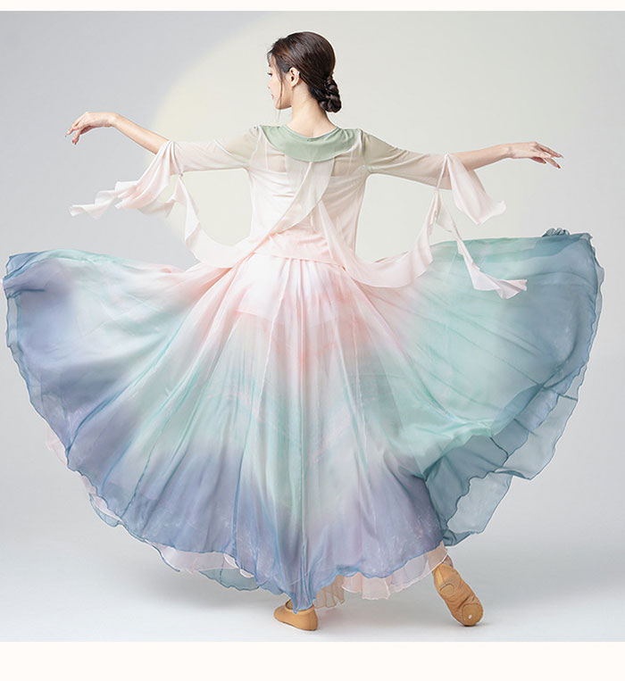 ダンス衣装 長袖 トップス ロング丈 シフォン スカート フレアスカート 広がるスカート ふんわり シフォン スカート ダンス レッスン着 レディース 大人 ダンス 発表会 ステージ 舞台 衣装 バレ