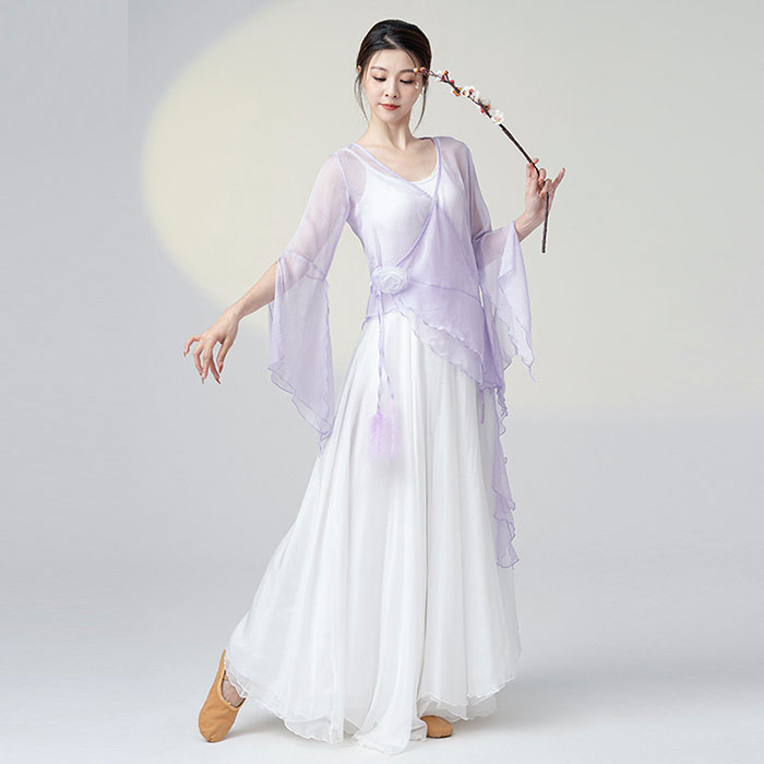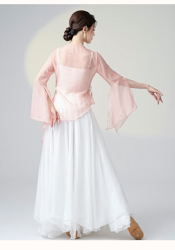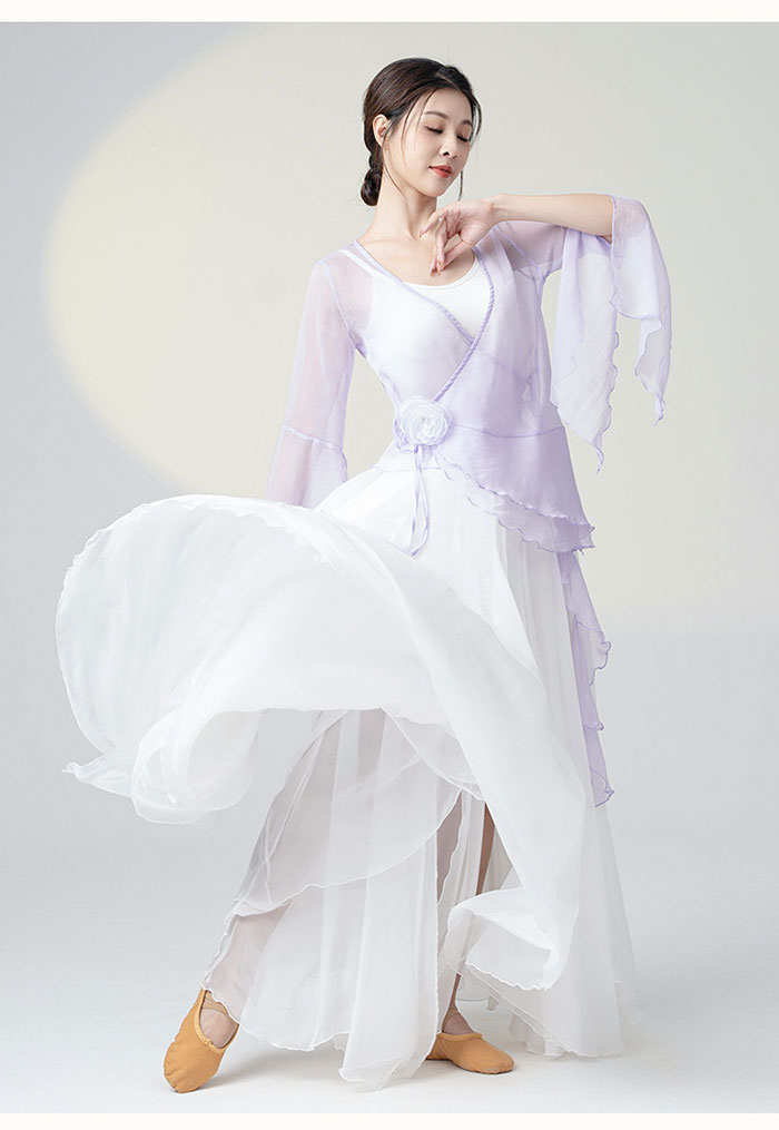 ダンス衣装 長袖 トップス ロング丈 シフォン 巻きスカート フレアスカート 広がるスカート ふんわり シフォン スカート ダンス レッスン着 レディース 大人 ダンス 発表会 ステージ 舞台 衣装