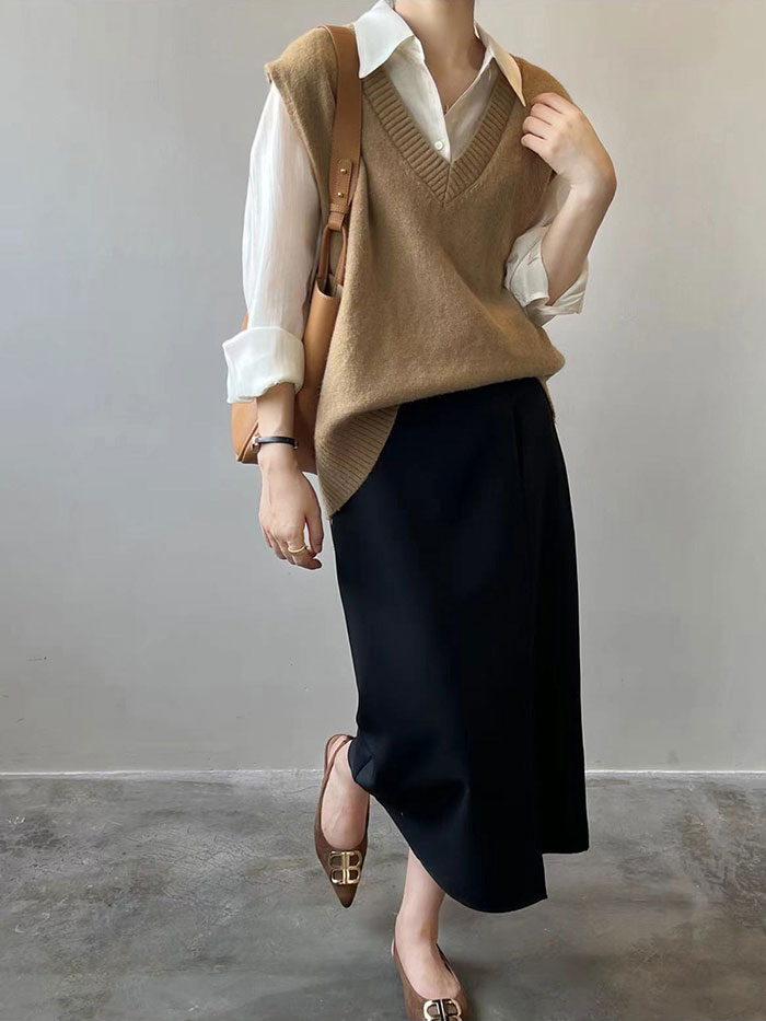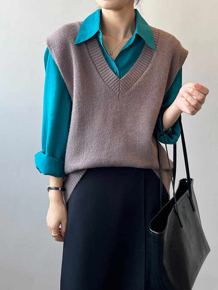 Vネックベスト トップス レディース