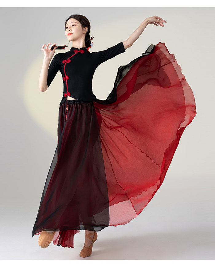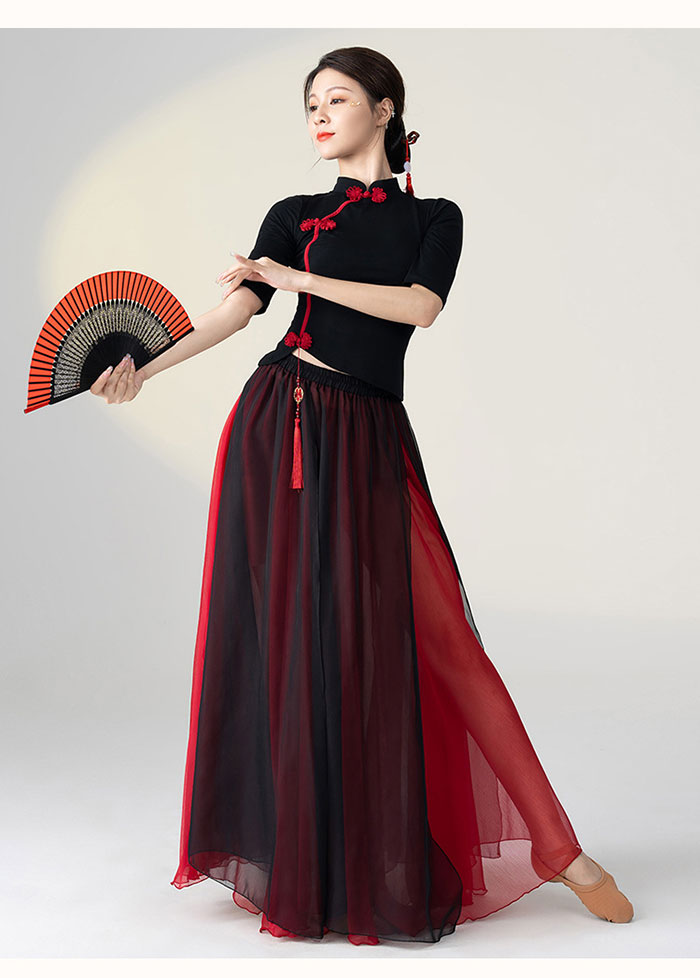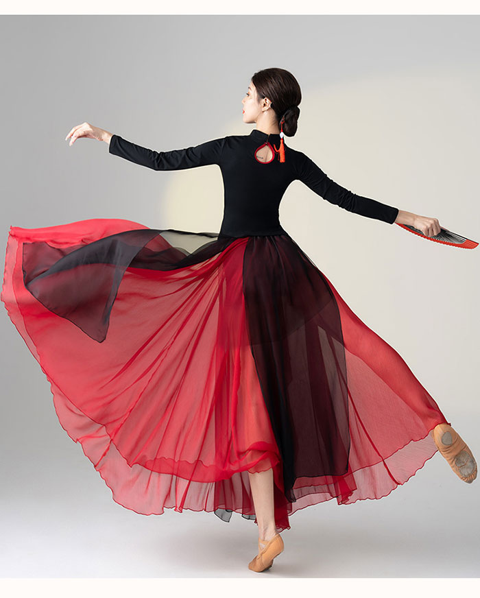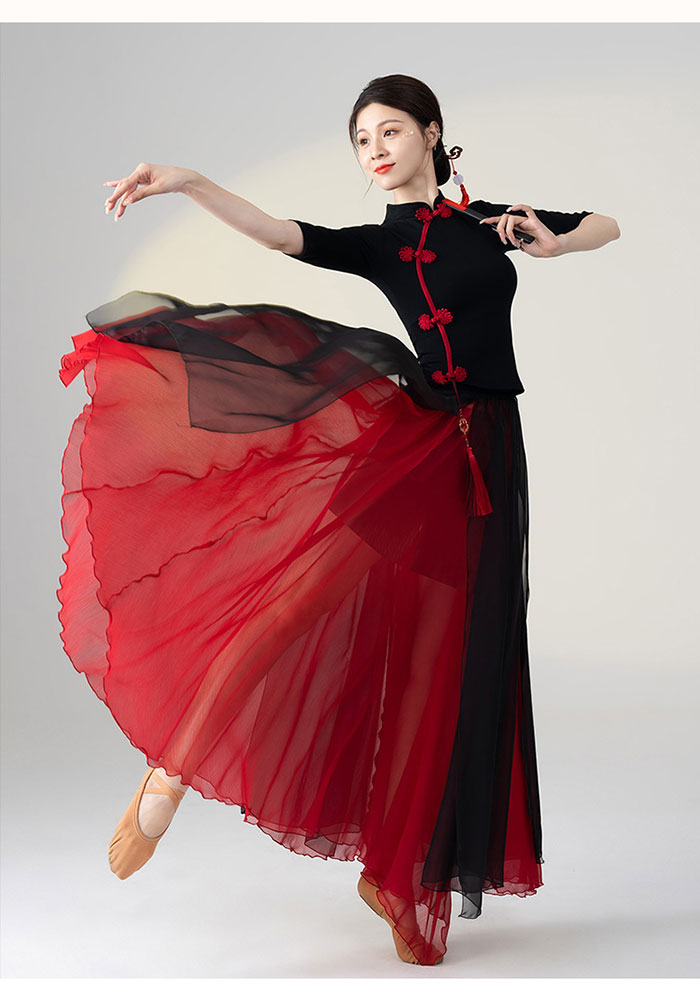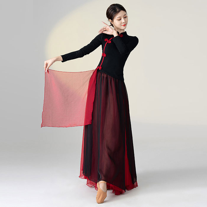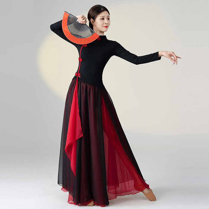 ダンス衣装 トップス パンツ チャイナドレス風 花柄プリント長袖 トップス ロング丈 シフォン パンツスカート ワイドパンツ ダンス レッスン着 セットアップレディース 大人 ダンス衣装 発表会 おし