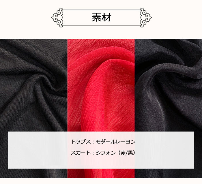 vertical-key: 黒のトップス+赤のスカート 赤のトップス+黒のスカート スカート単品:3880円