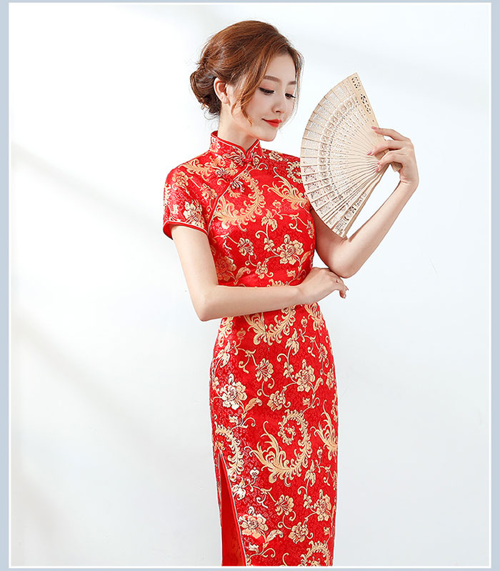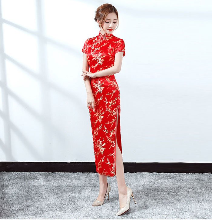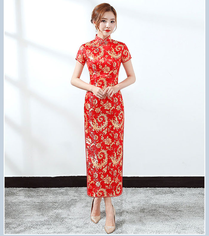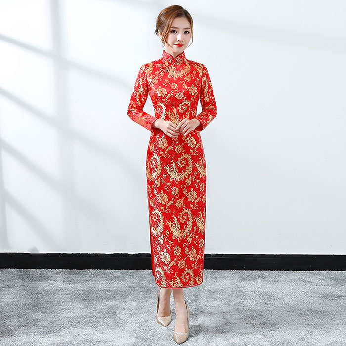 チャイナドレス ロング丈 半袖 長袖