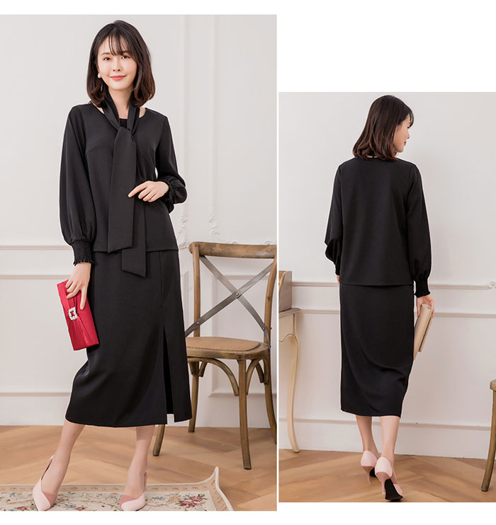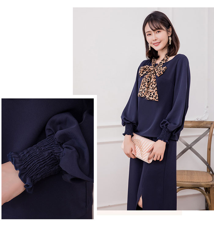 シアースリーブ ドッキングシャツ ボウタイシャツブラウス