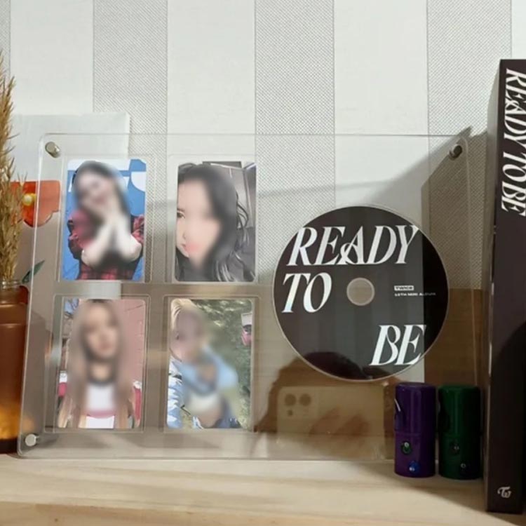 卓上 収納 展示 ジャケット CDディスプレイスタンド アクリルフレーム CDラック CD収納 透明 展示 トレカフレーム アイドル 1枚CD+4枚トレカ