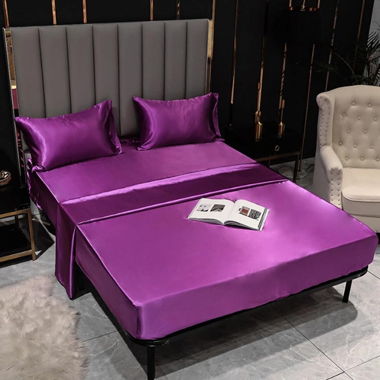高級感なる無地サテン調ベッドシーツ マ
