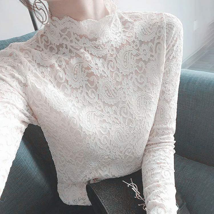 レース 長袖 ニット 細見え トップス