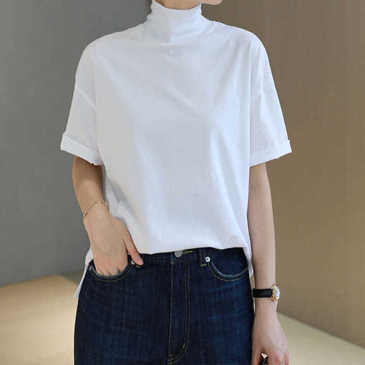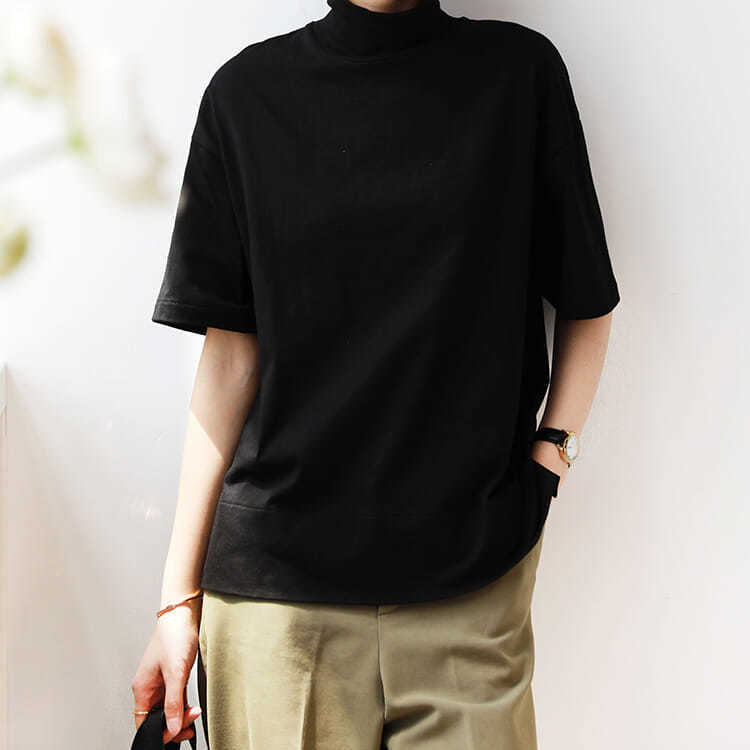 シンプル モックネックTシャツ カット