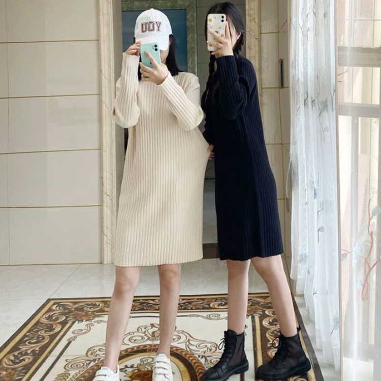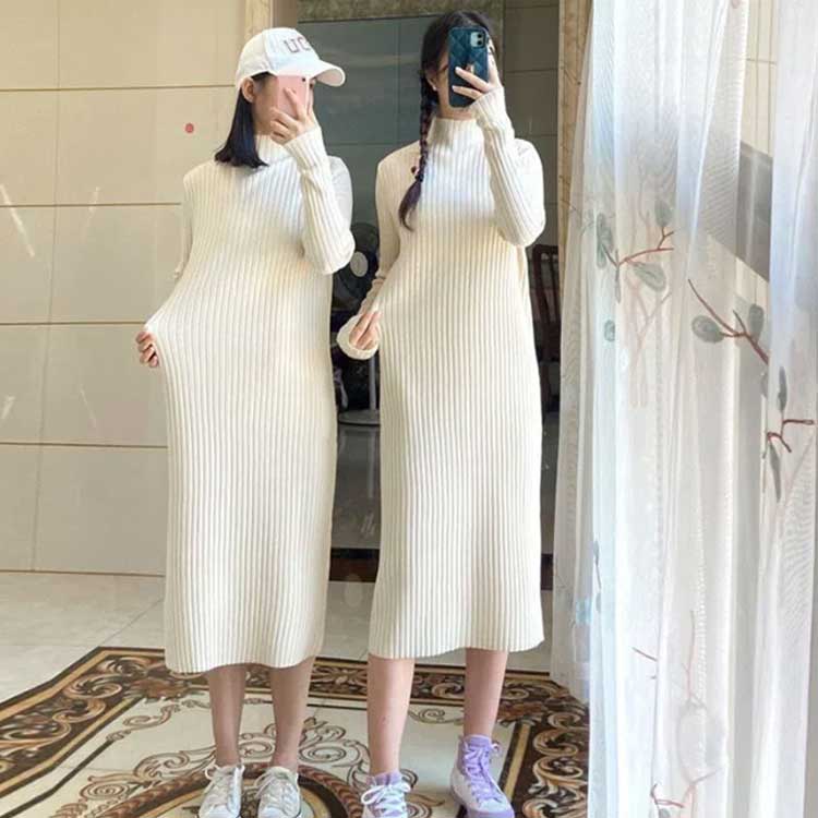 ワンピース 無地 ニットワンピース 長