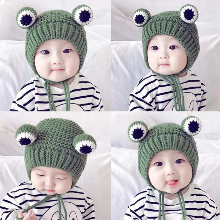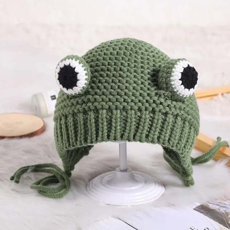 女の子 スキー カエル ニット帽子 ニ