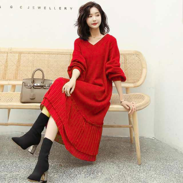 ニットワンピ 美シルエットプリーツワン